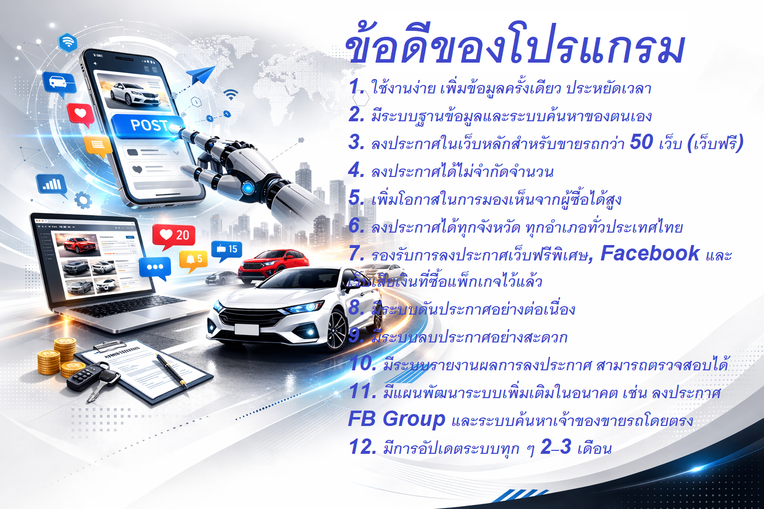 บริการโปรแกรมโพสต์ขายรถ 50 เว็บ อัตโนมัติ